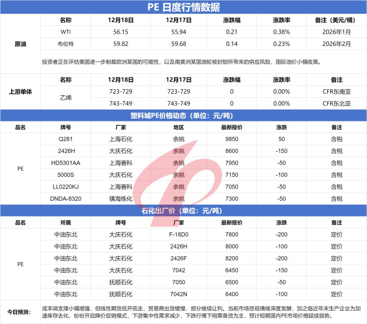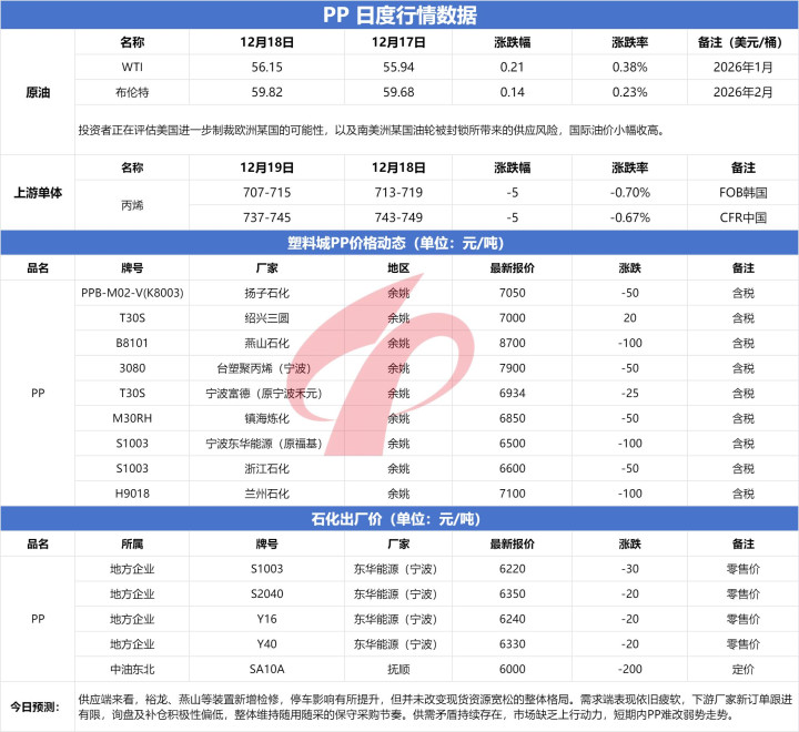 牛弘配资 塑料行情1219今日PP、PE最高跌200元!